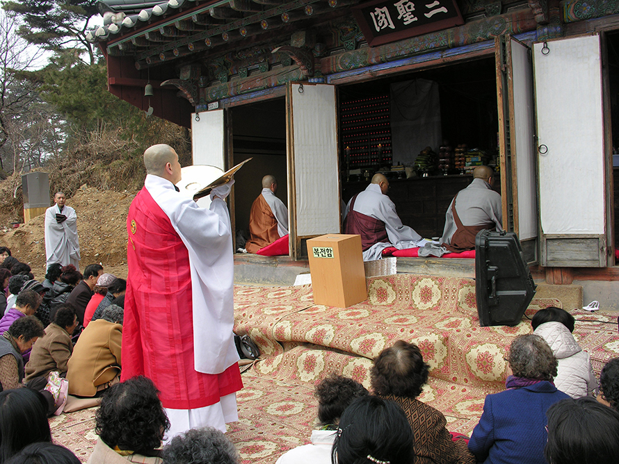 삼성각 점안식 준비하시는 보살님들
